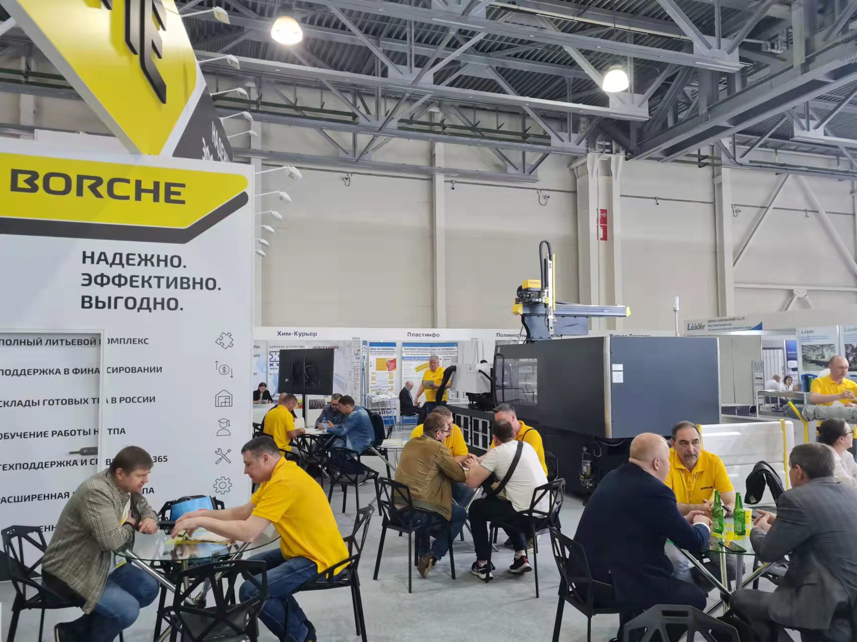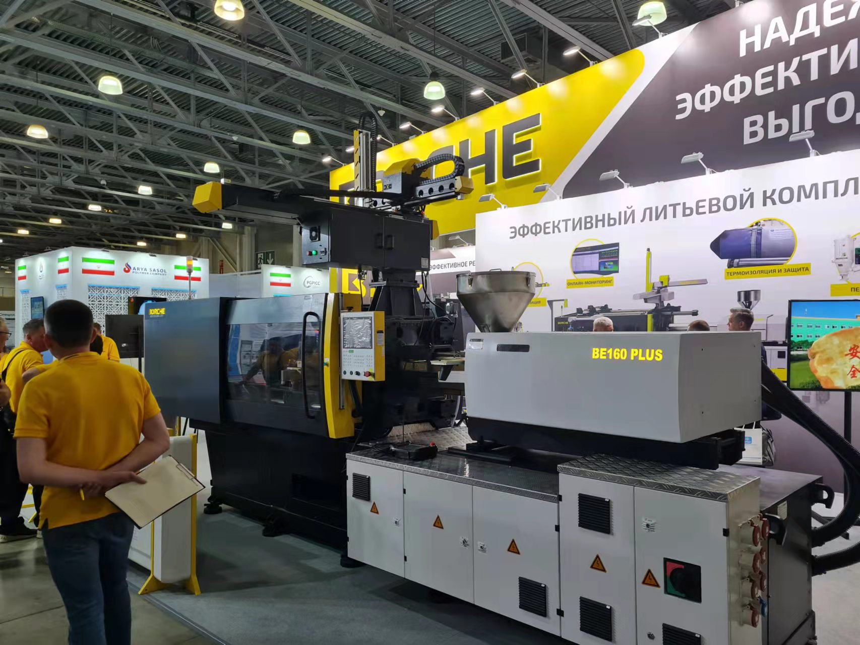 博創作為俄羅斯最主要的注塑機進口品牌之一,本次展出以高端全電機BE160為主的一整套注塑方案。該方案從原料的干燥,輸送,到注塑成型,最后由博創機械手取出和修剪水口,全程自動化,更配以博創注塑云智能互聯系統支持生產過程監控、工單派發、在線檢測機器等功能。全電機BE160更是具有精密穩定、快速高效、智能互聯等優勢。展會期間,博創展位2С07客流絡繹不絕,反響熱烈。開展第一天,便有兩臺注塑機售出。